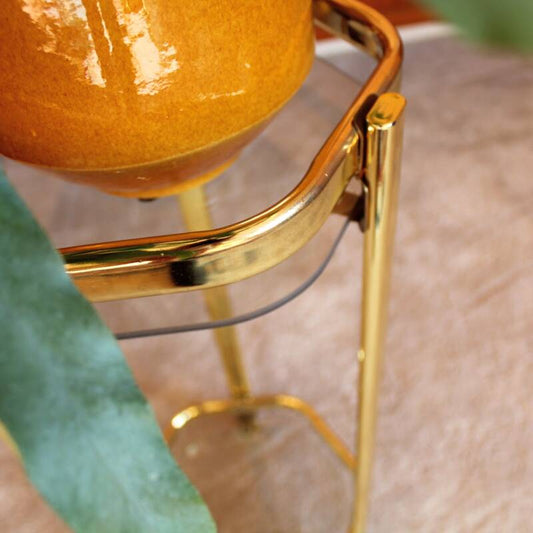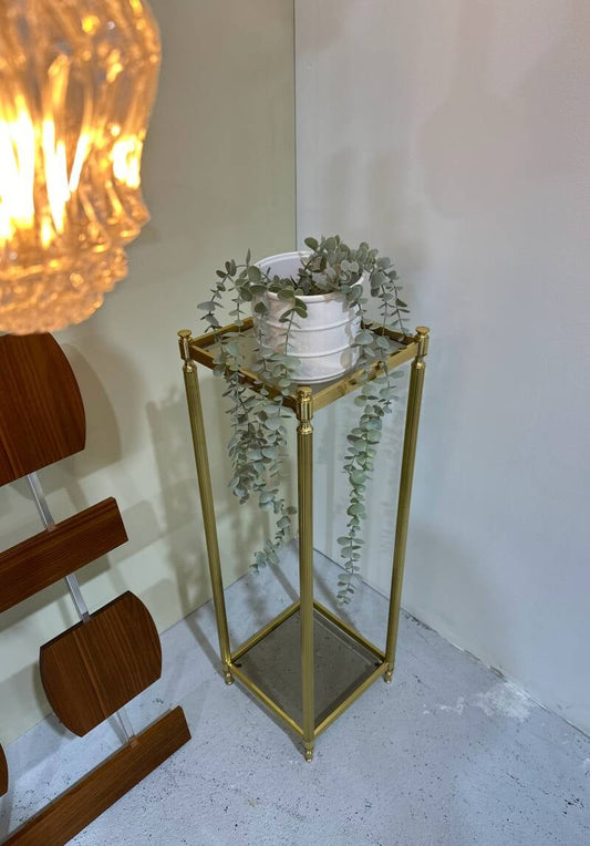 Vintage plantenstandaard, plantentafel - messing, rookglas | 00969