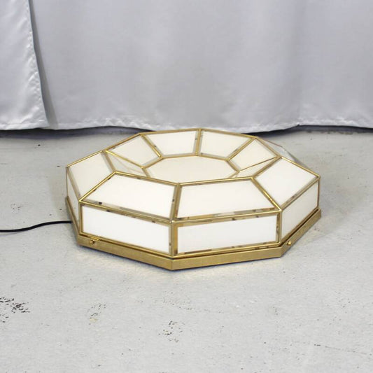 Vintage plafondlamp, plafonnière - bloem-vorm, jaren '70, messing glas | 01202