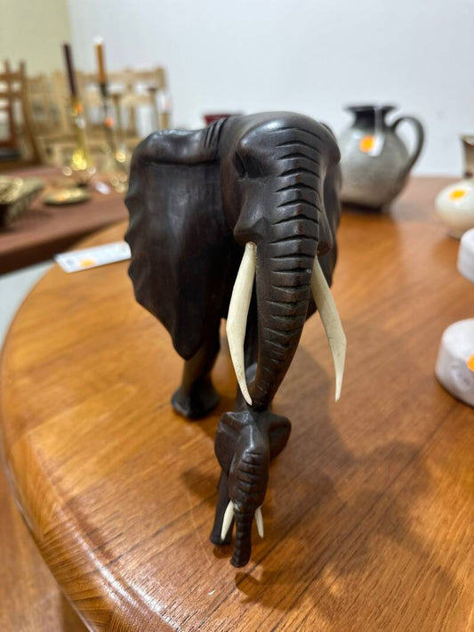 UitverkochtHandgesneden houten olifanten met ivoor | SSS3