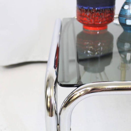 Vintage ronde bijzettafel - wit, glas jaren '70