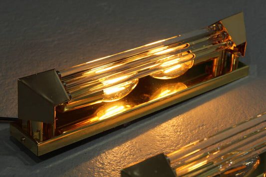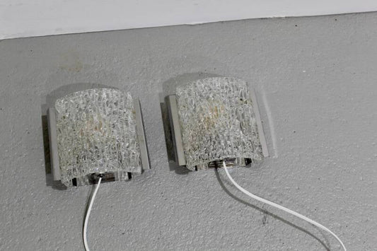 Vintage set wandlampen - glas, chroom jaren '70 | 01191