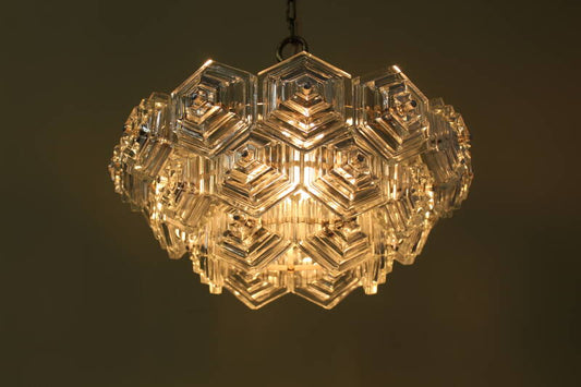 Vintage VEB Leuchten kroonluchter - kristallen, messing | 00792