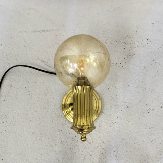 Vintage wandlamp, plafondlamp, plafonnière - messing glas | 00959