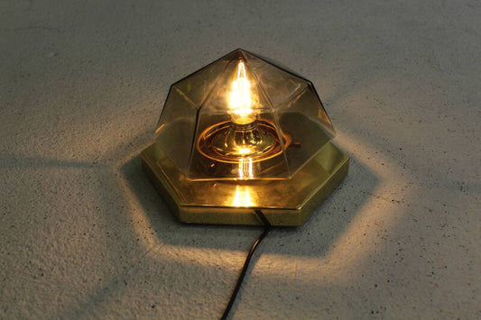 Vintage wandlamp, plafondlamp Glashütte Limburg XL - messing, rookglas | 00746