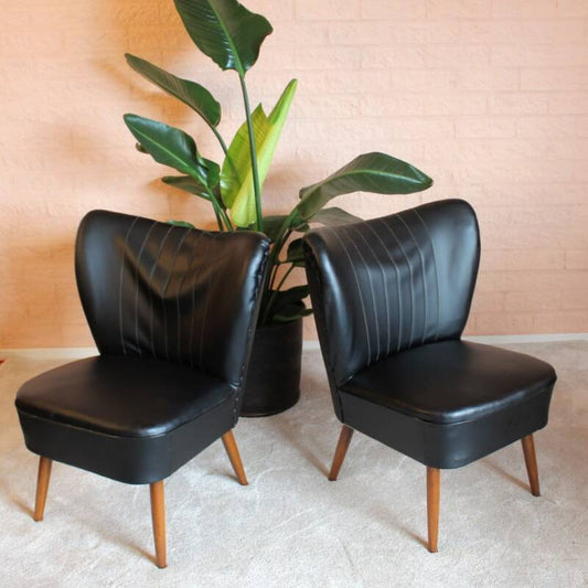 Zwarte vintage cocktailstoel/clubfauteuil — 2 stoelen