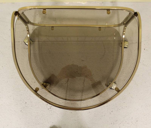Vintage bijzettafel - blauw rookglas, messing jaren '70 | 01011