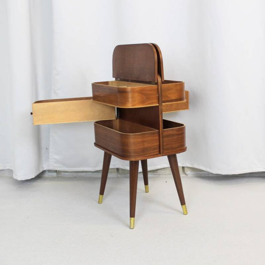 UitverkochtVintage bijzetkastje, naaikastje uitschuifbaar