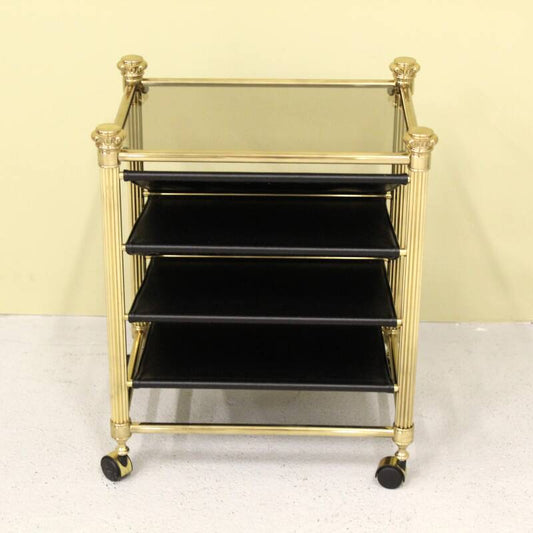Vintage bijzettafel, trolley, lectuurmand - Jaren '80, rookglas | 01187