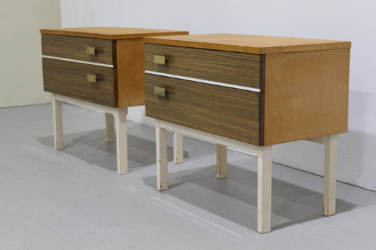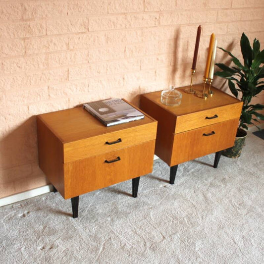 Vintage set nachtkastjes, ladekastjes - licht hout, mid century | 01042