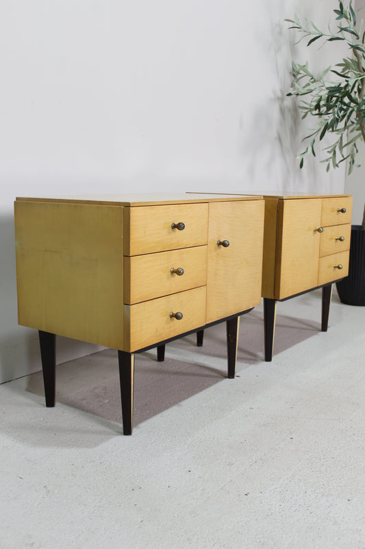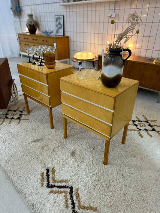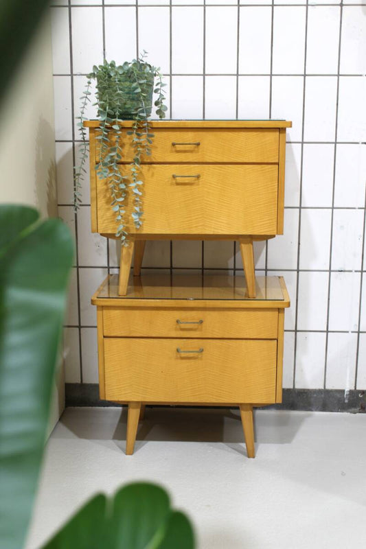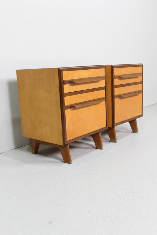 Vintage set nachtkastjes, ladekastjes - jaren '50, licht hout | 01460