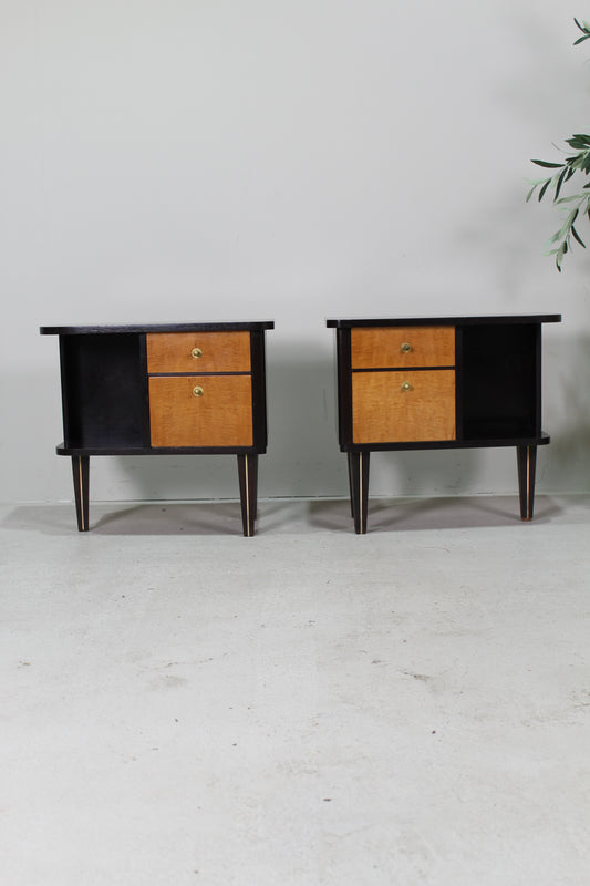 Vintage set nachtkastjes licht hout l - mid century | 00884