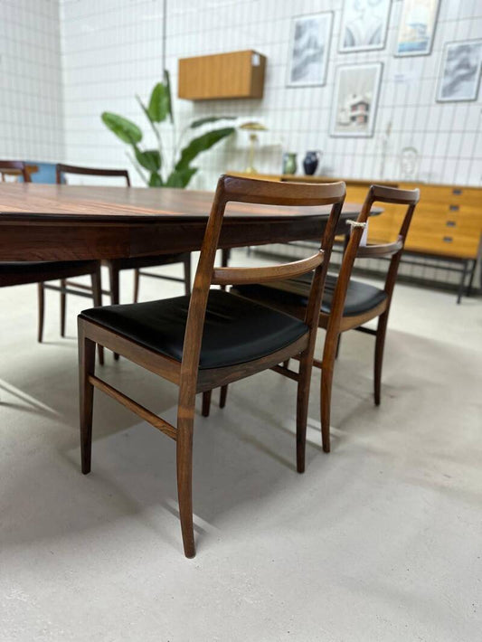 4x Vintage Esszimmerstühle - Palisander, schwarzes Kunstleder, 60er | 00758