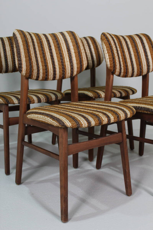 4x Vintage Esszimmerstühle - 70er, braun orange gestreift | 01396