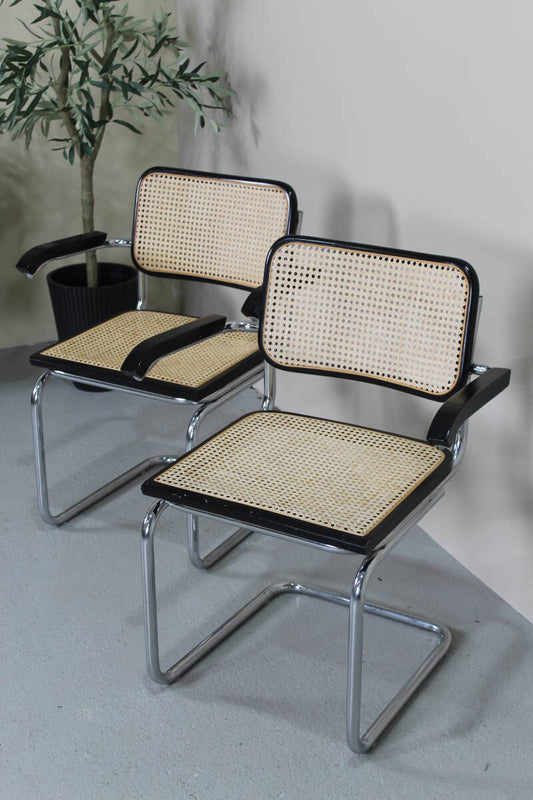 2x Vintage-Esszimmerstühle mit Gurtband, Stühle mit Rohrrahmen | 01318
