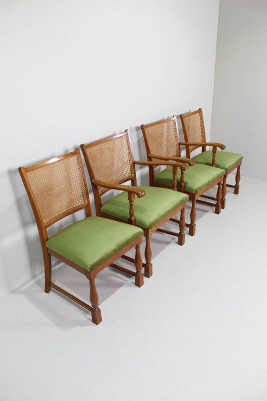 Vintage Esszimmerstühle - Lübke, grün, Korbgeflecht 1940er/50er Jahre | 01333