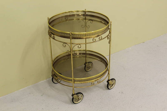 Französischer Vintage-Barwagen aus Messing – Rauchglas, 1970er | 00806