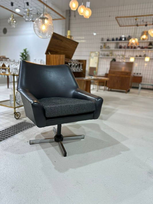 Vintage Sessel, Sitz - schwarzes Kunstleder, 1960er Jahre | 00938