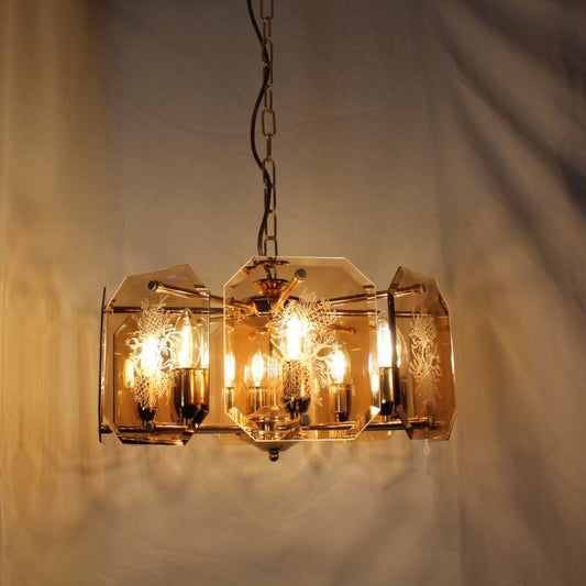 AusverkauftVintage Pendelleuchte Buntglas - Rauchglas, 70er