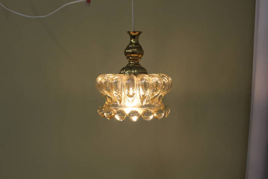 Vintage Pendelleuchte - Messing bernsteinfarben 70er | 01040