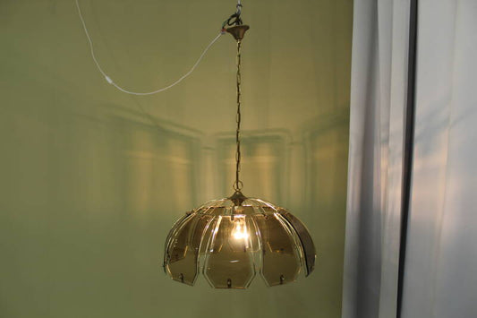 AusverkauftVintage Pendelleuchte Facettenschliff Rauchglas
