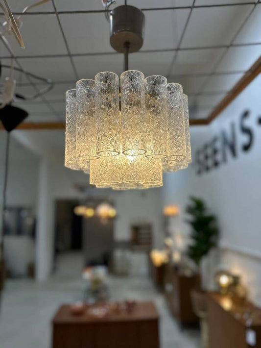 Vintage DORIA Pendelleuchte Kronleuchter - Eisglas 60er | 01244