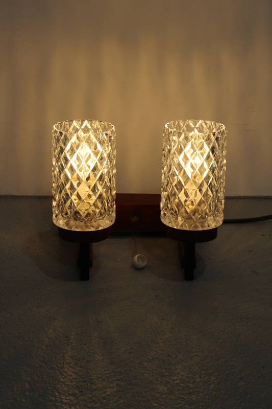 Vintage Doppelwandlampe - Holz, Glas 1960er Jahre | 01198
