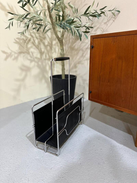 Vintage Lesekorb, Zeitschriftenständer, Zeitungskorb - 60er Jahre Kunstleder | 01284