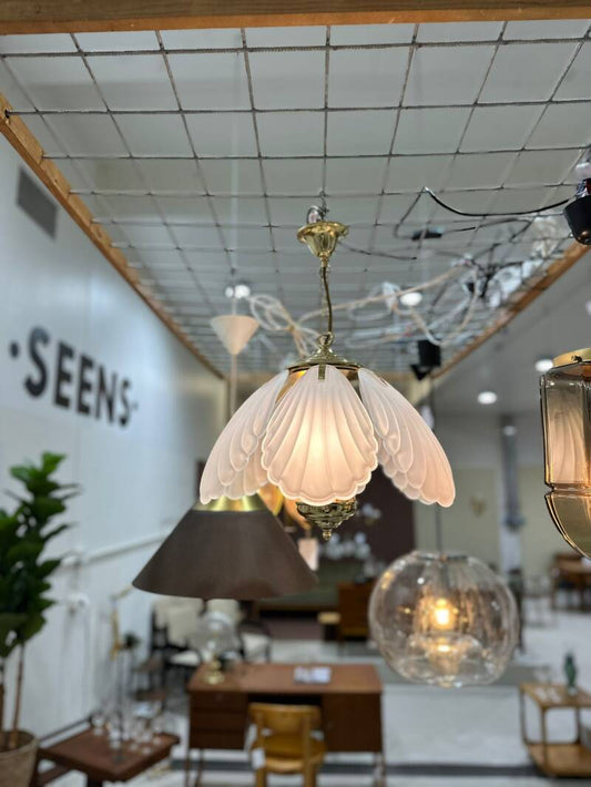 Vintage Pendelleuchte - Messing, Glas, Hollywood Regency, 70er | 01236