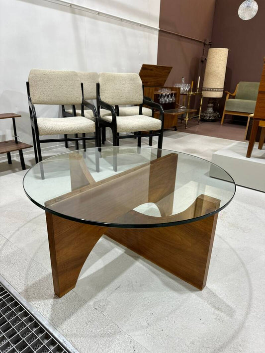 Runder Vintage-Couchtisch mit Glasplatte – Holz, Glas | 01237