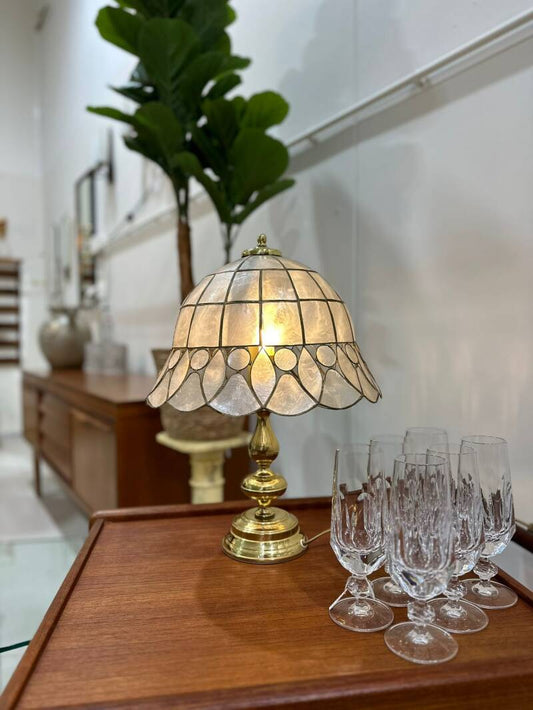 Vintage Messing Tischlampe - Perlmutt, Messing, Honsel, 70er | 01234