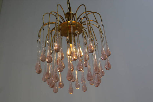 Vintage Murano-Tropfenlampe – Pink, Gold, 70er | 01084