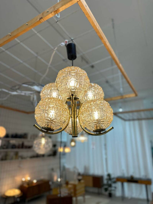 Vintage Pendelleuchte Richard Essig – 6 Arme, Messing 1970er | 01004