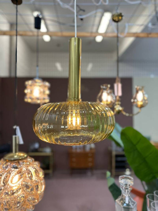 Vintage Pendelleuchte - Messing bernsteinfarben 70er | 01040