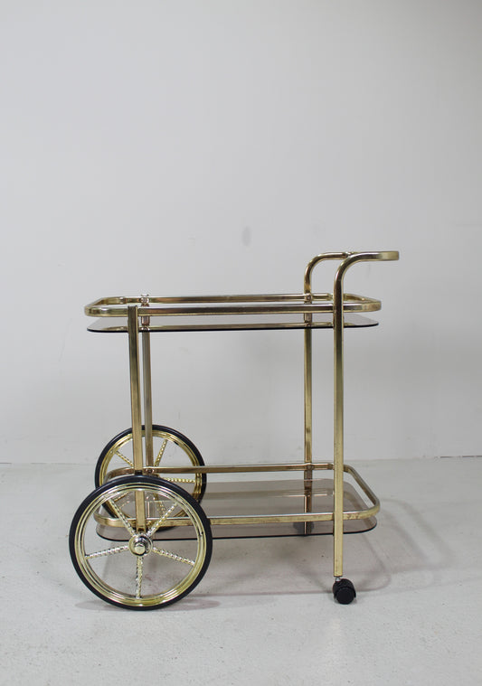 Vintage Barwagen, Servierwagen - Messing, Rauchglas, 1970er Jahre