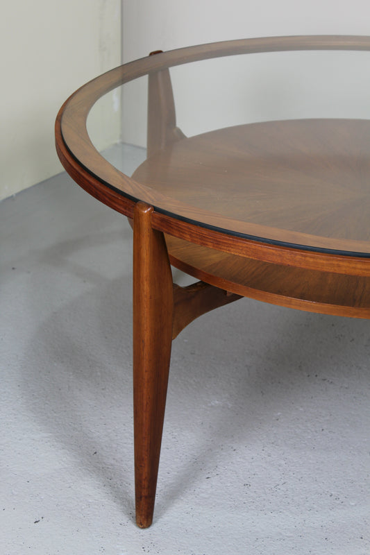 AusverkauftRunder Vintage-Couchtisch – 60er Jahre, Holzglas