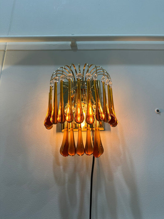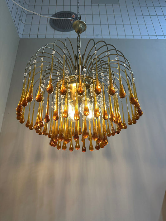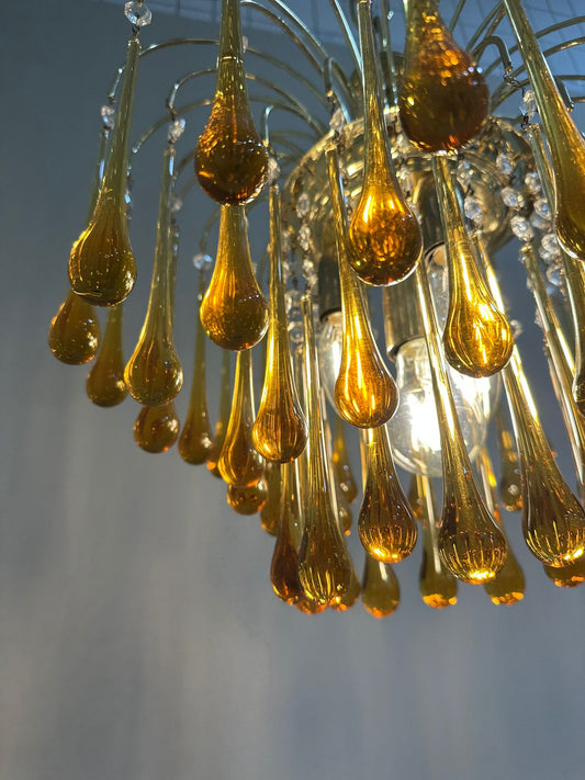 AusverkauftVintage Murano teardrop hanglamp - amber