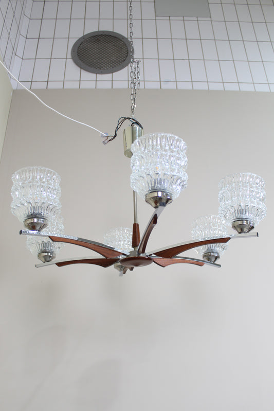 Vintage Deckenlampe, Kronleuchter - 60er Jahre, Holz, Glas