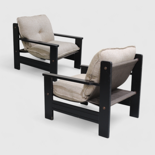 AusverkauftVintage Sessel 70er Jahre - schwarz beige