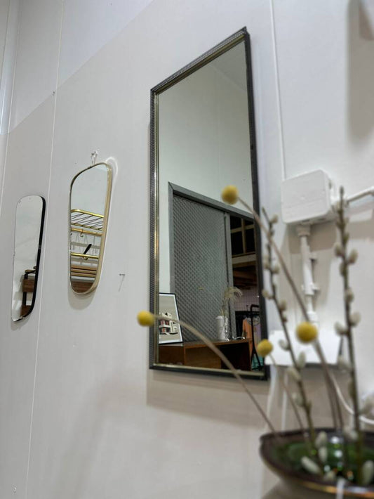 Vintage Spiegel - 1950er Jahre, schwarz, goldenes Metall
