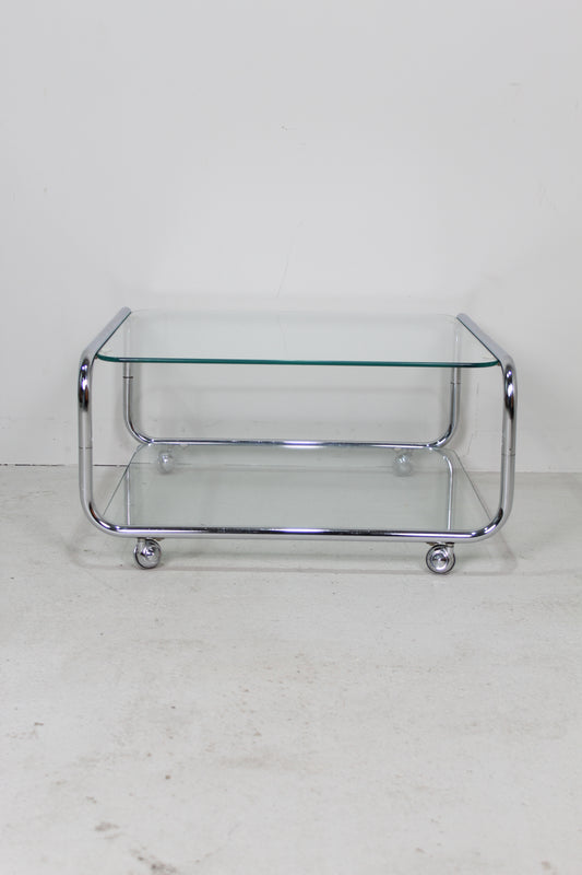 AusverkauftVintage Beistelltisch - Chrom, Glas 70er