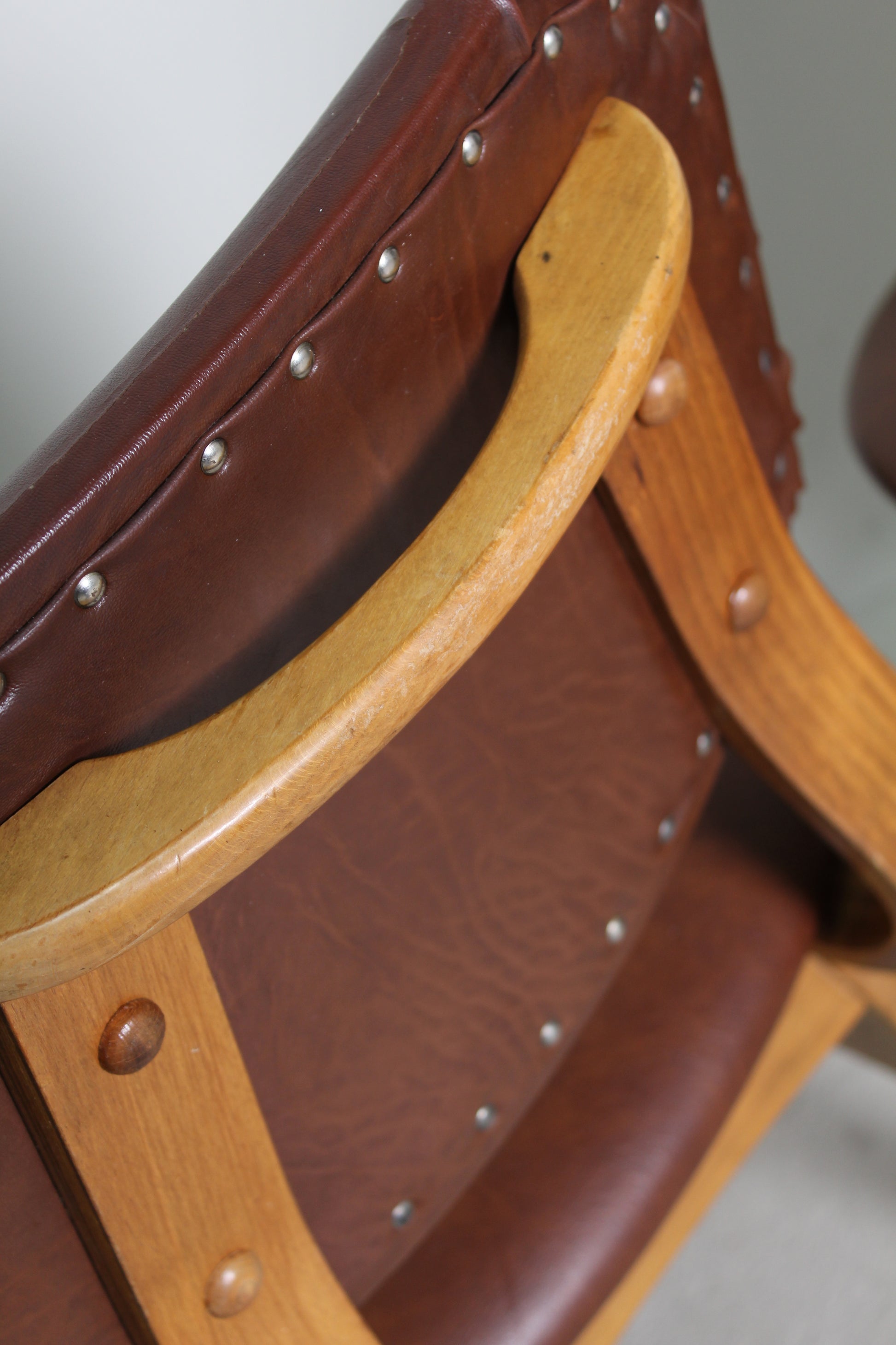 Één stoel is in zeer goede staat, de ander heeft wat schade aan het skai. Zie foto's.