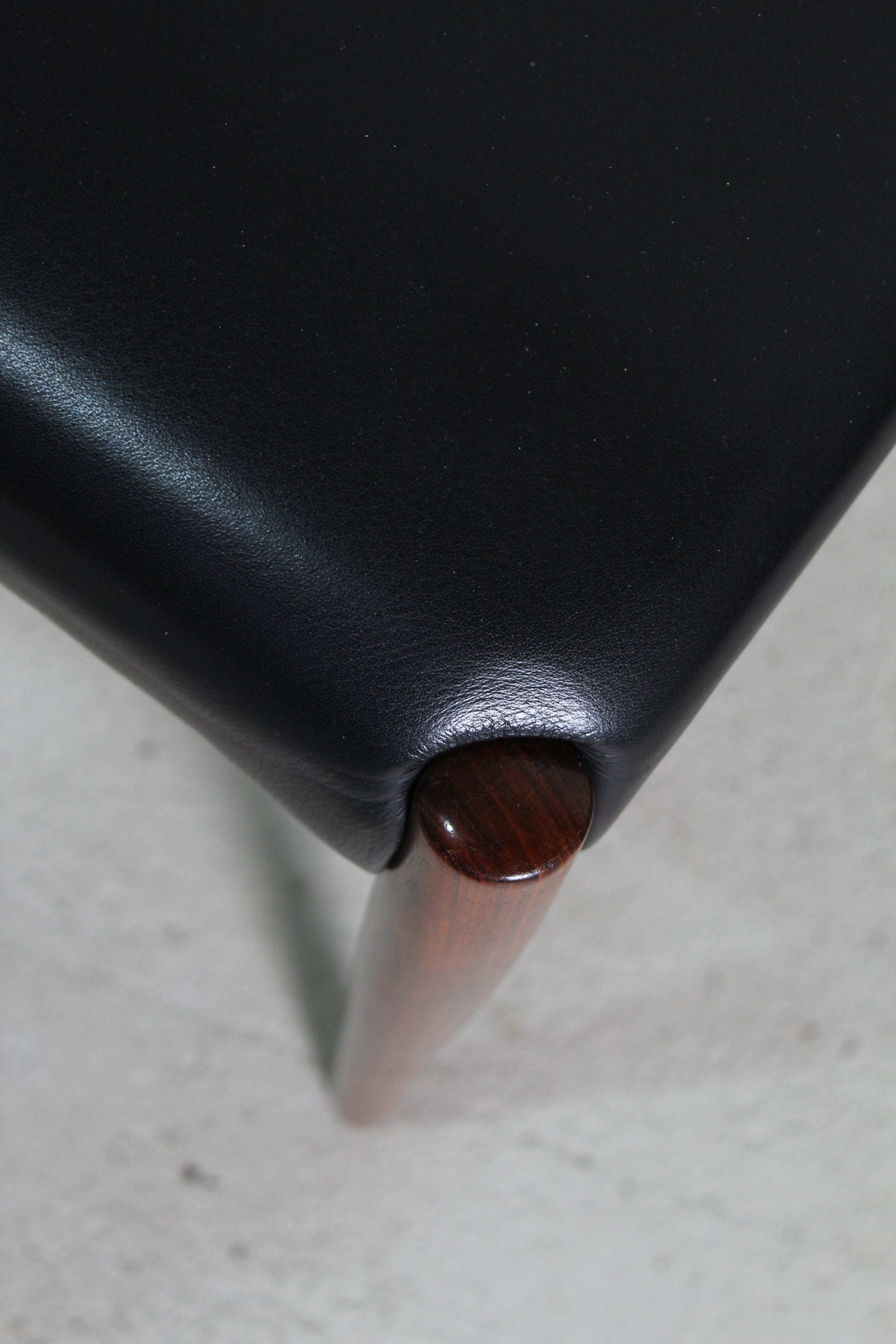 Deze 3 mid century stoelen zijn gemaakt in Duitsland in de jaren '60. De eetkamerstoelen zijn gemaakt van massief hout en hebben een zitting van zwart skai.