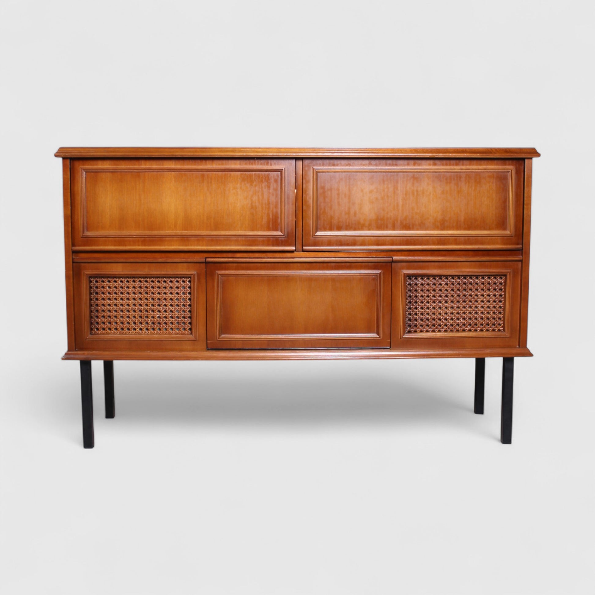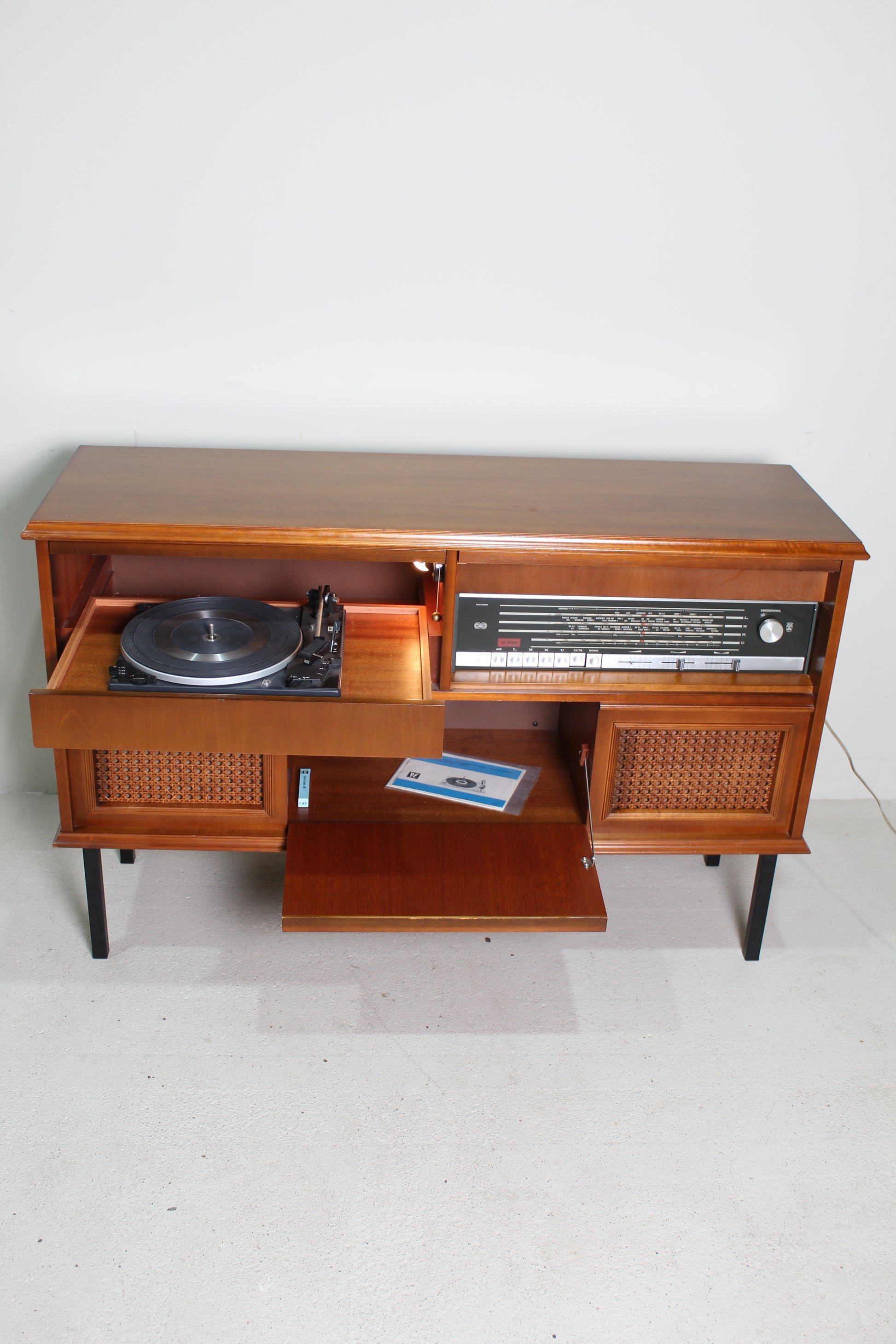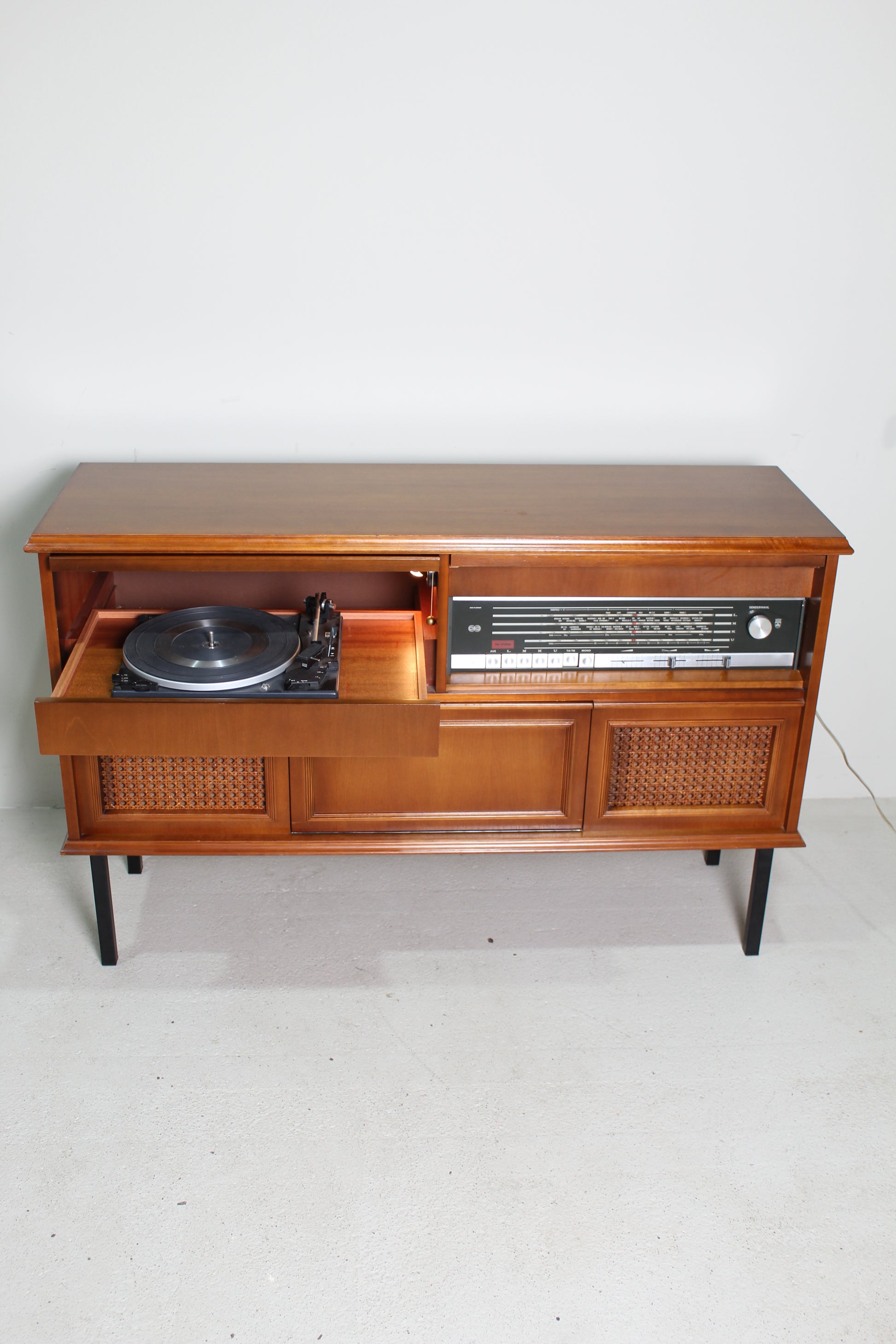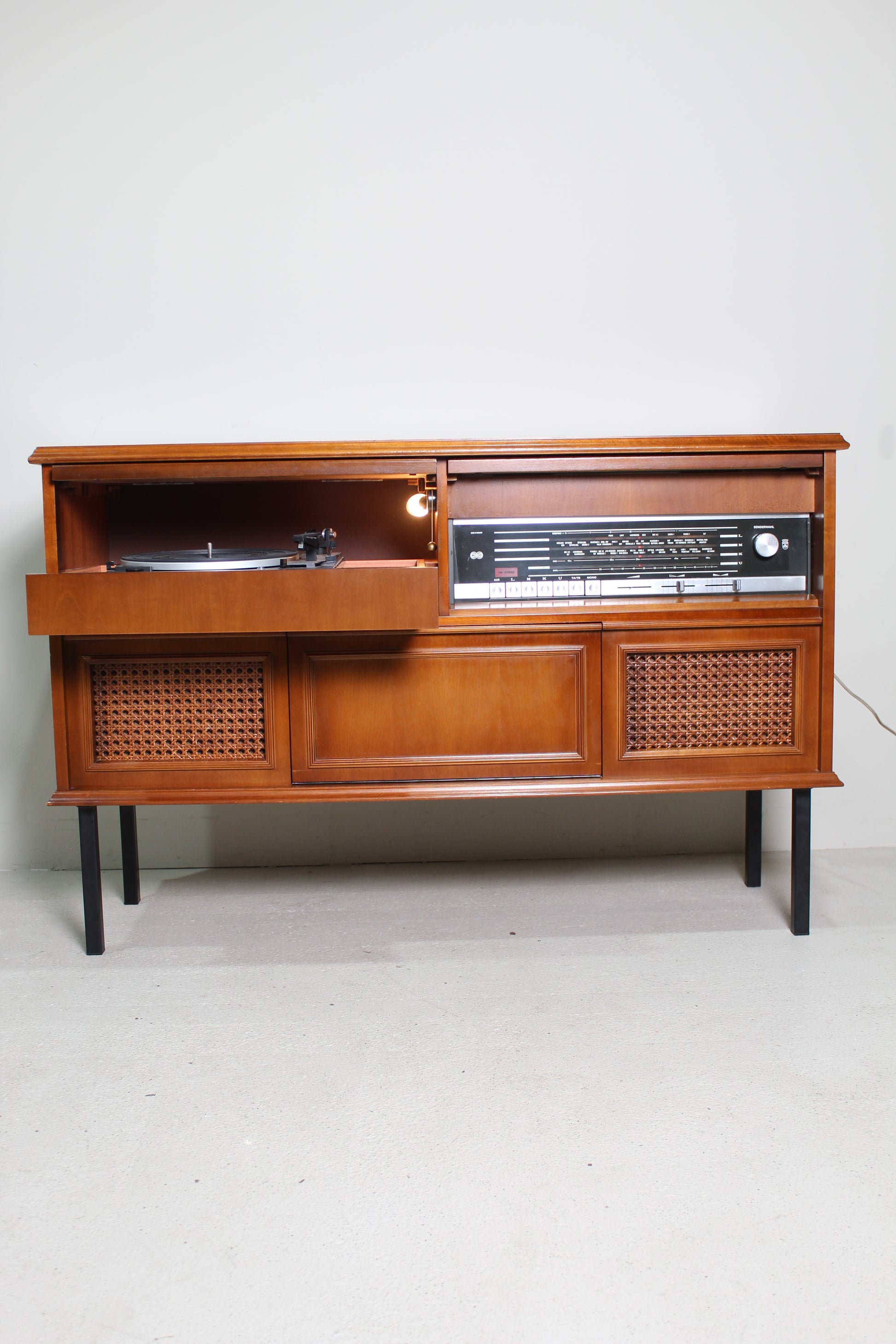 Vintage radiokast uit de jaren '70/'80 van het merk Gründig. De complete radiokast doet het nog, en kan worden voorzien van Novatone! Met Novatone kun je, je mobiel of tablet via Bluetooth verbinden met de kast. Hierdoor heb je de charmes en het goede geluid van het oude radiomeubel, en toch je favoriete Spotify lijstjes.