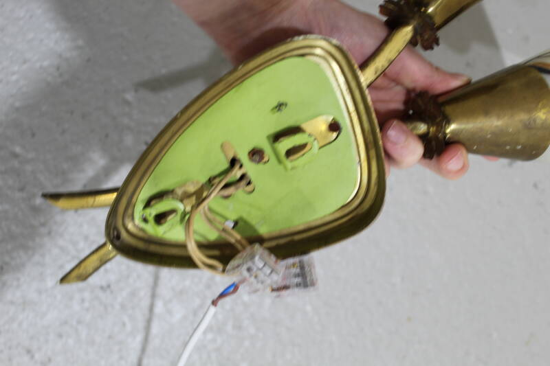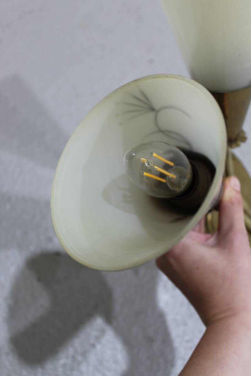 Vintage 50s wall lamp, made of brass and glass. This mid century lamp is meant to be mounted directly on the electricity on the wall. But you could also make a cord with a switch, like we did for the photos.