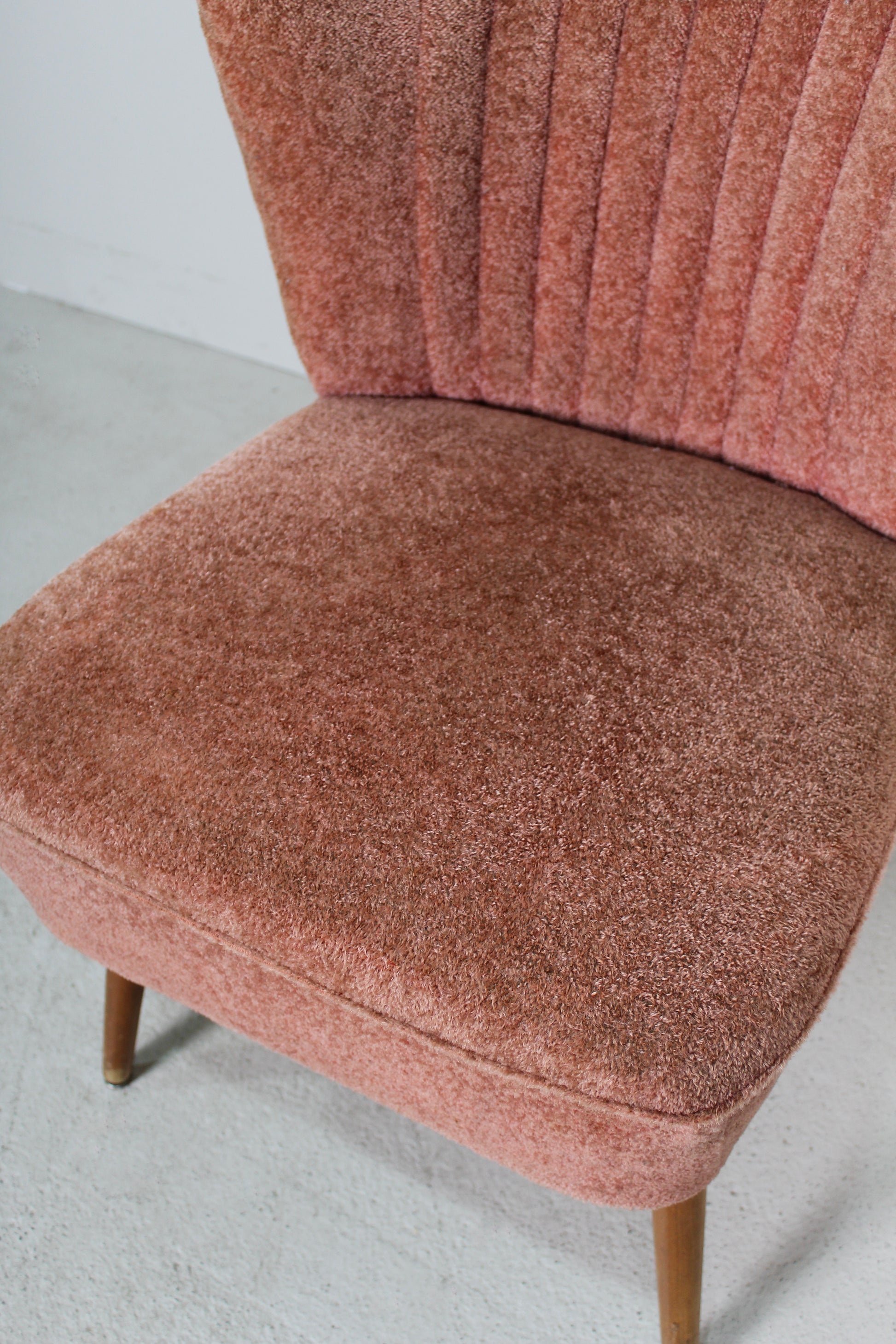 Deze twee cocktailstoelen komen uit de jaren ’50 en zijn uitgevoerd in het kenmerkende Expo 58-ontwerp. De stoelen hebben een zithoogte van circa 36 cm en een zitdiepte van 44 cm.