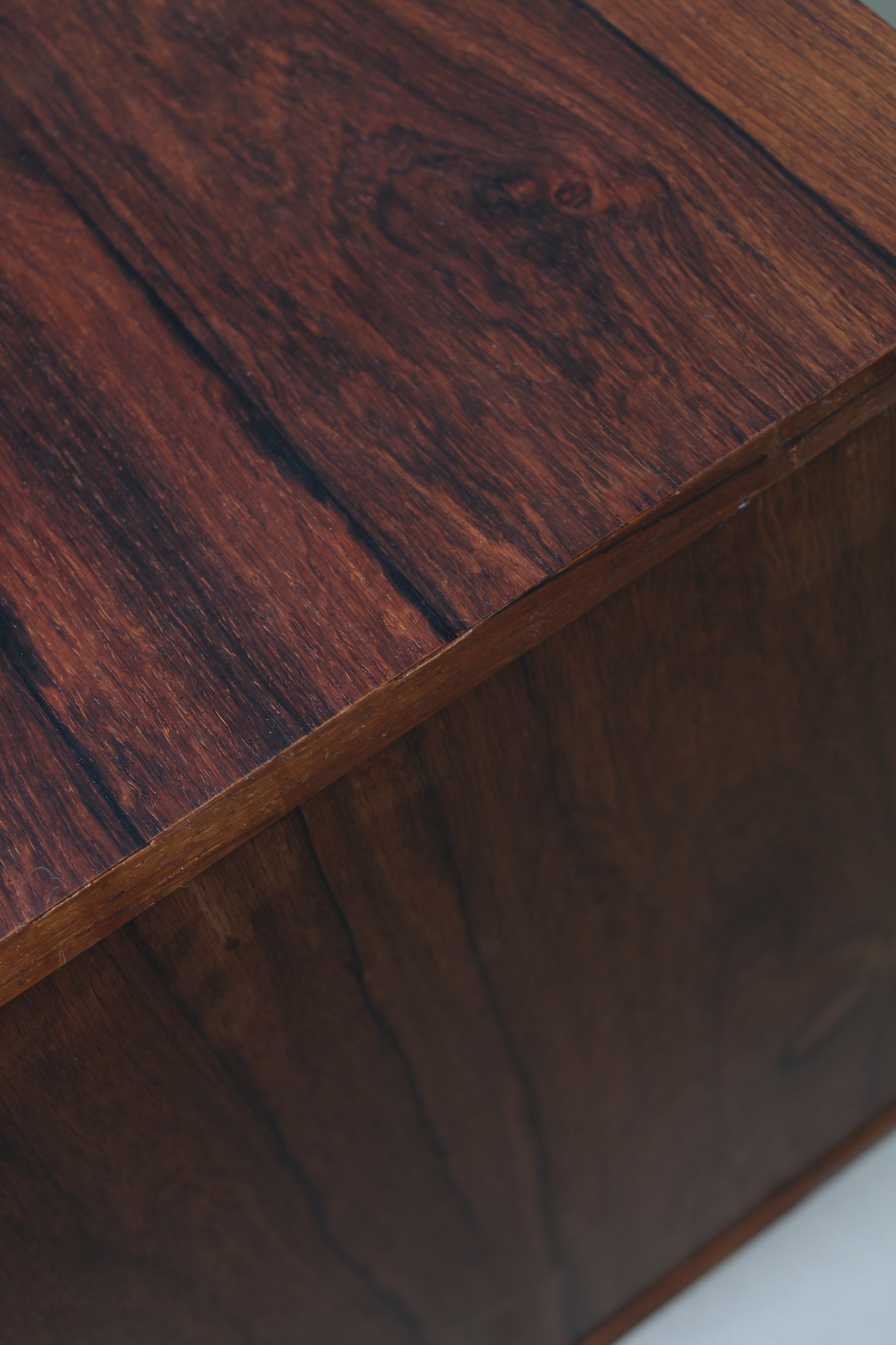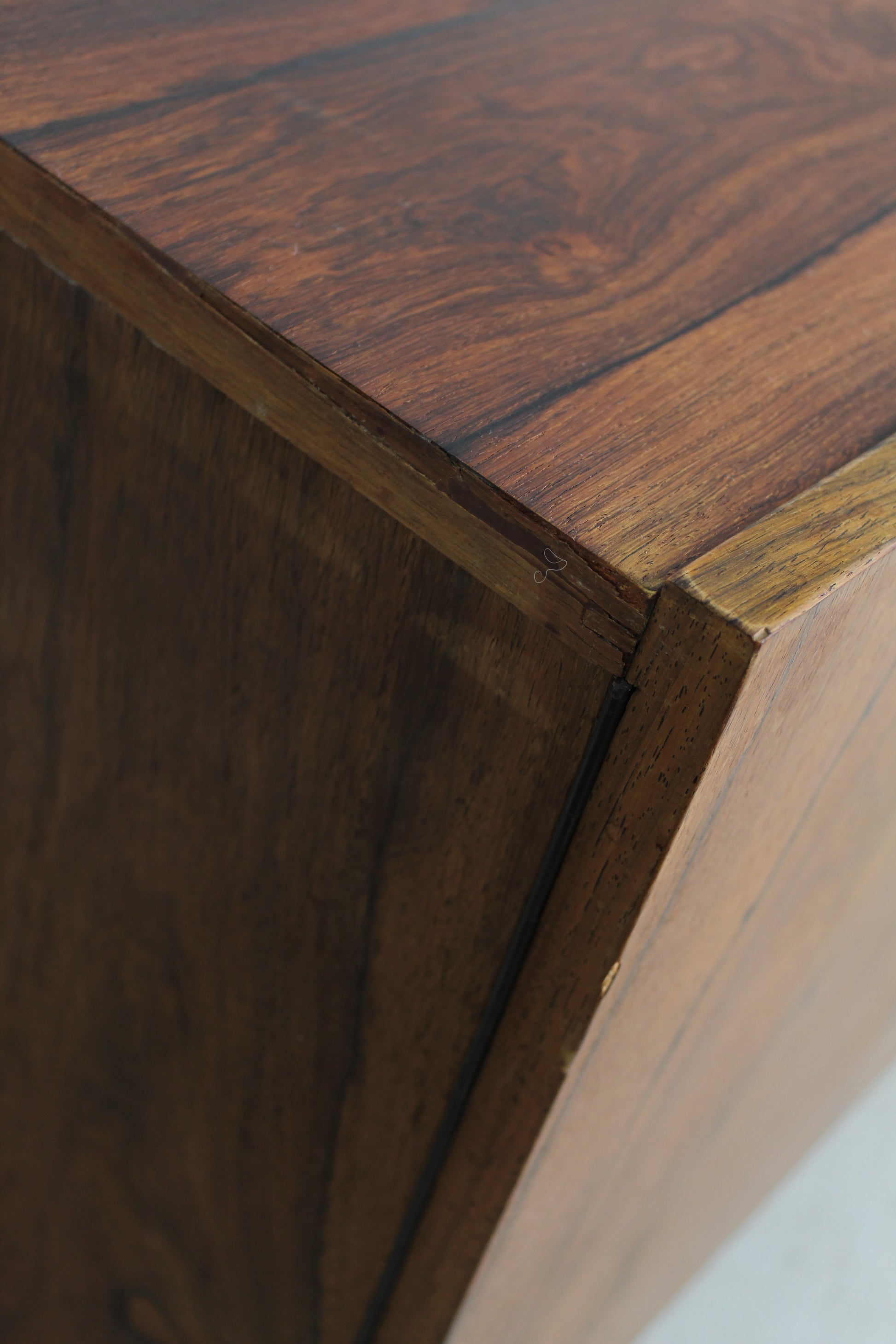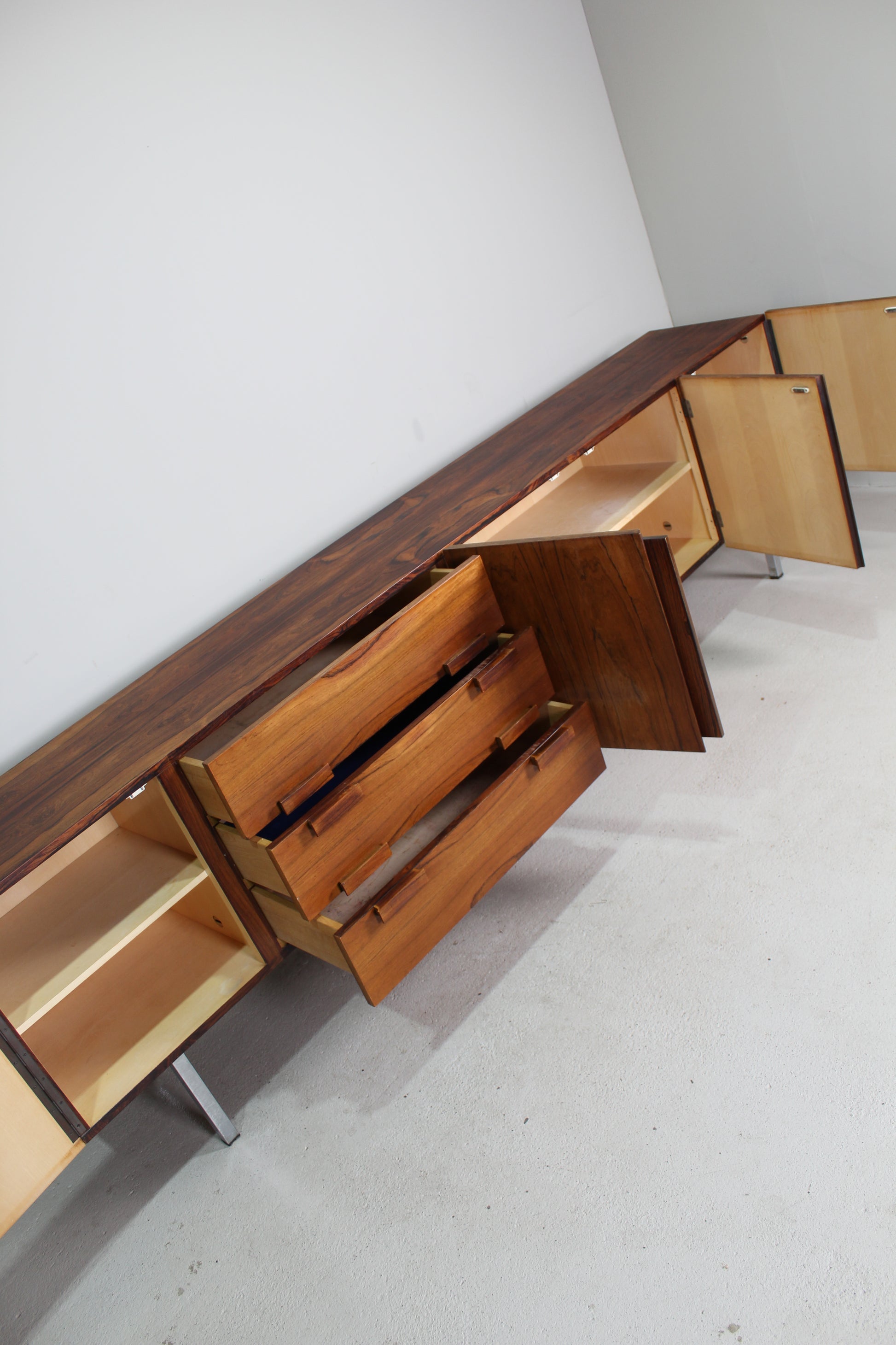 Dit grote zeldzame mid century dressoir komt uit de jaren '60 en is gemaakt van palissander hout (in het Engels Rosewood). Dit geweldige tropische hout staat bekend om zijn kunstzinnige houttekening. Ook dit sideboard heeft een prachtige uitgesproken houtnerf. De kast is gemaakt in Duitsland.