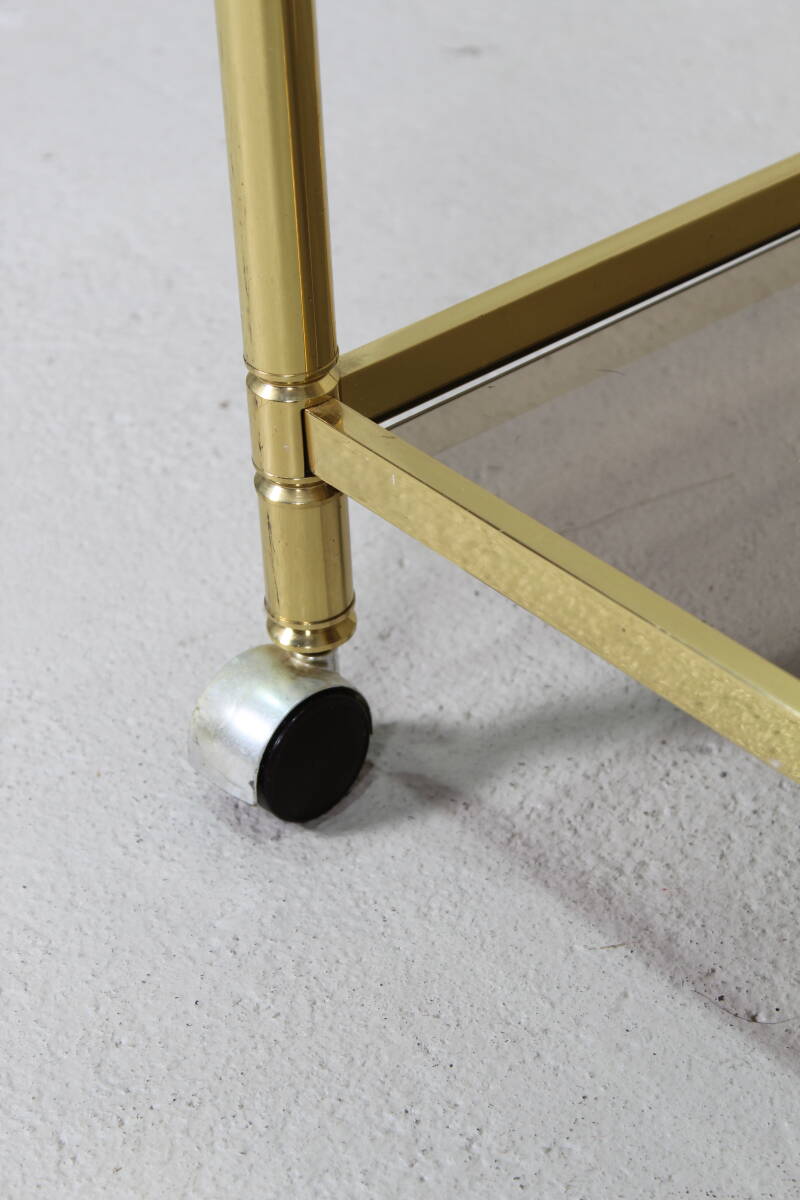 Vintage barcart, serveerwagen - messing, rookglas, jaren '70