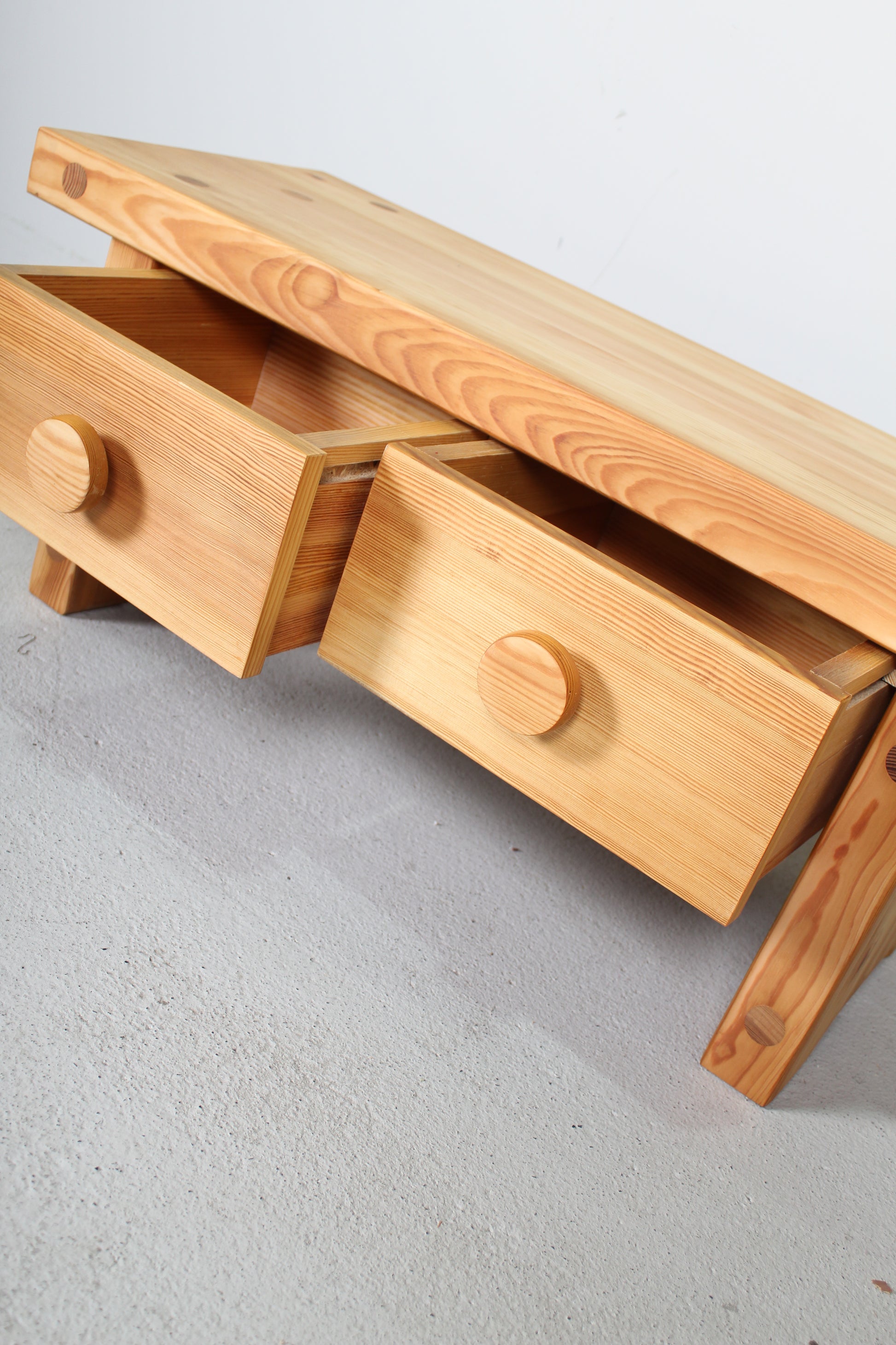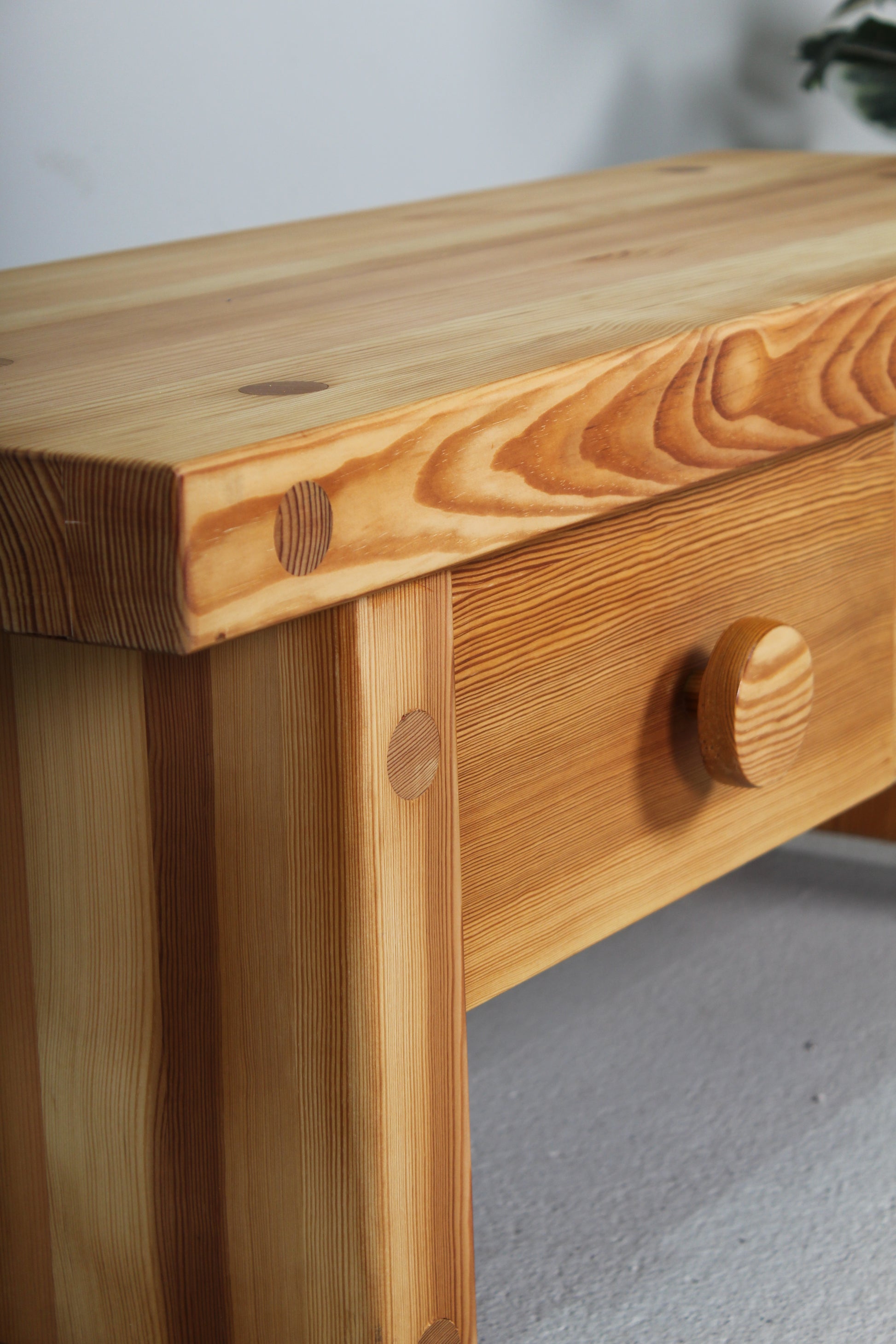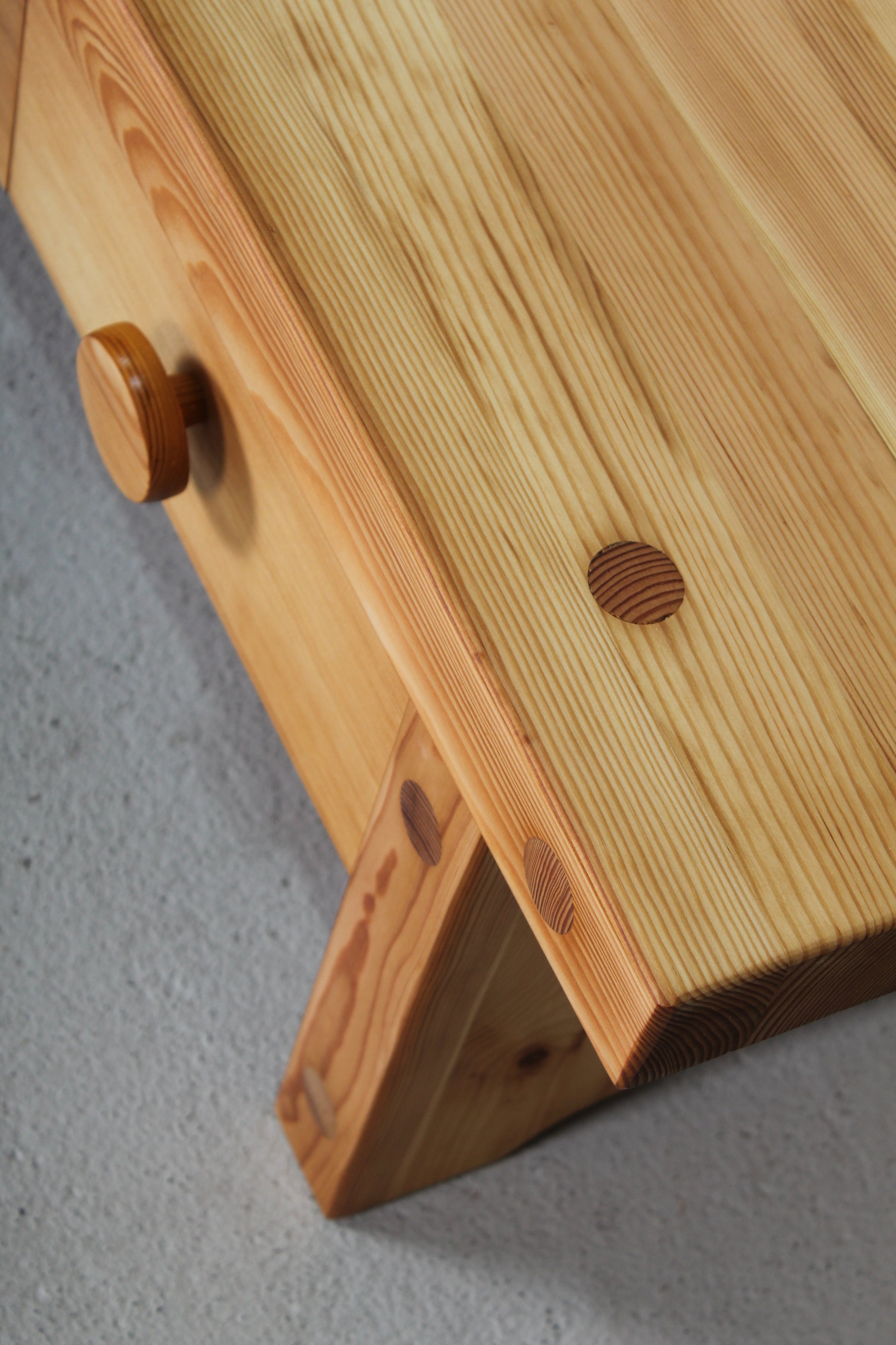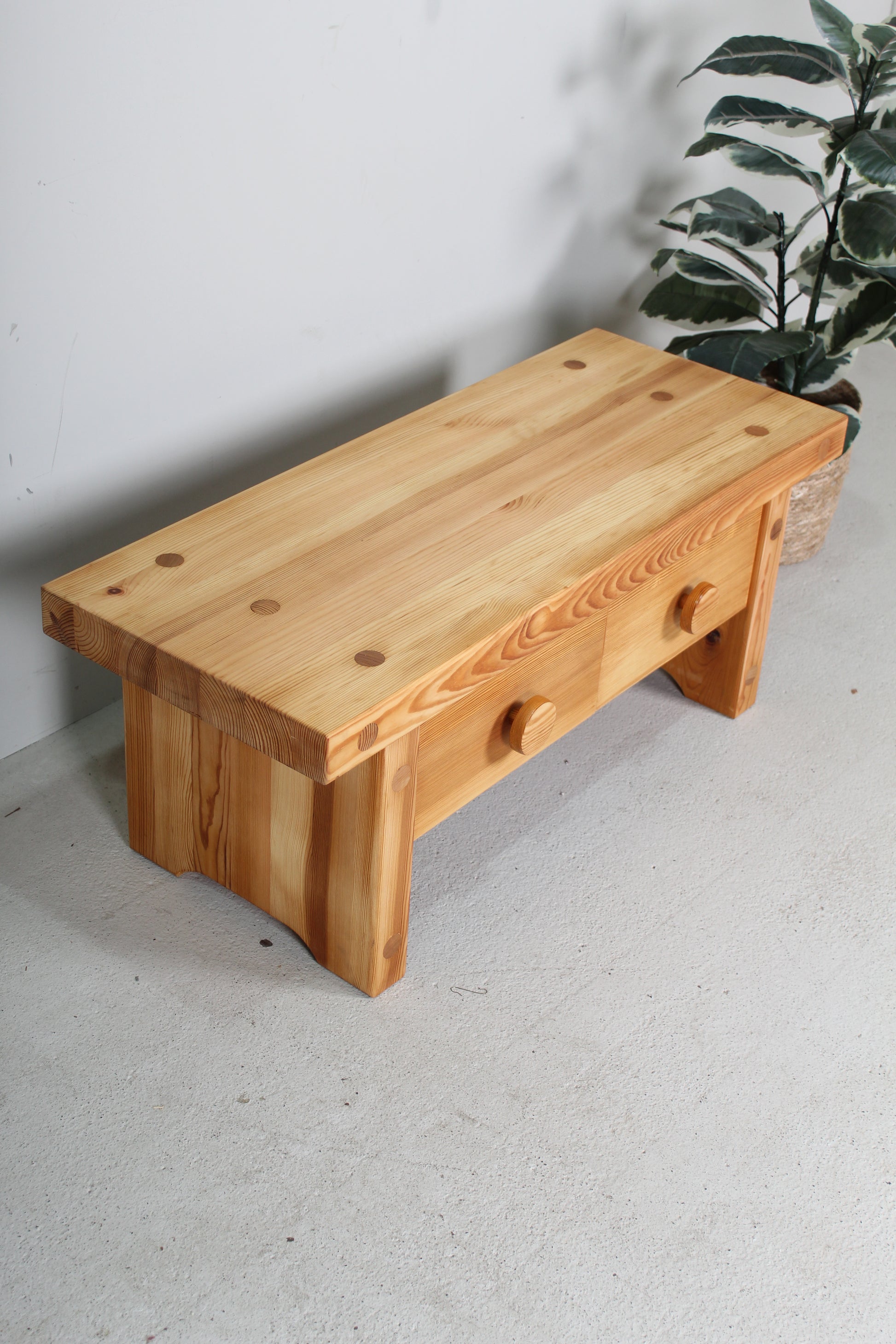 Dit vintage halbankje is is ontworpen door Ruben Ward voor het Zweedse Fröseke. Dit design bankje of kleine ladekast is gemaakt van massief grenen en komt uit de jaren '70.