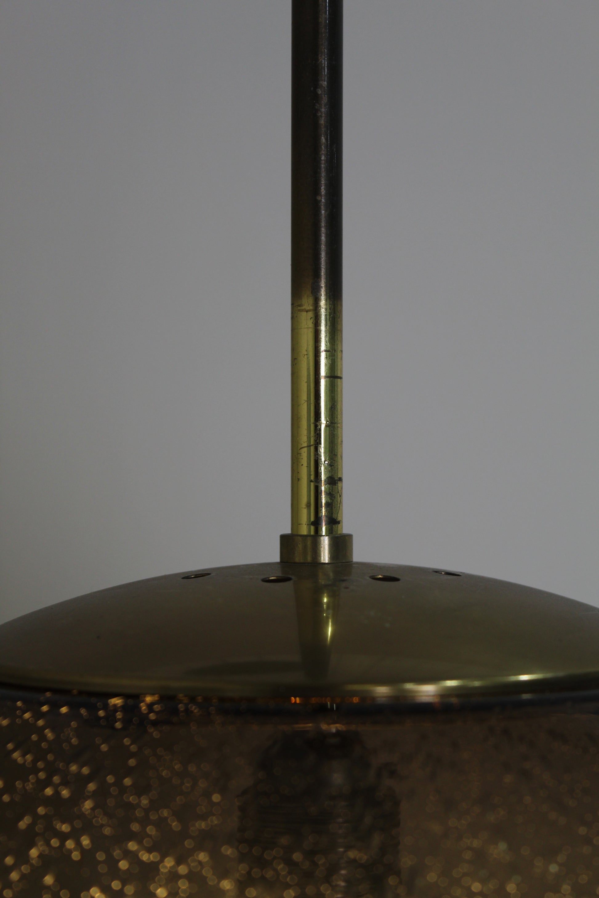 Deze grote mid century design bollamp of globe is gemaakt van mondgeblazen rookglas. De hanglamp komt uit de jaren '70 en is van gemaakt door Glashütte Limburg.