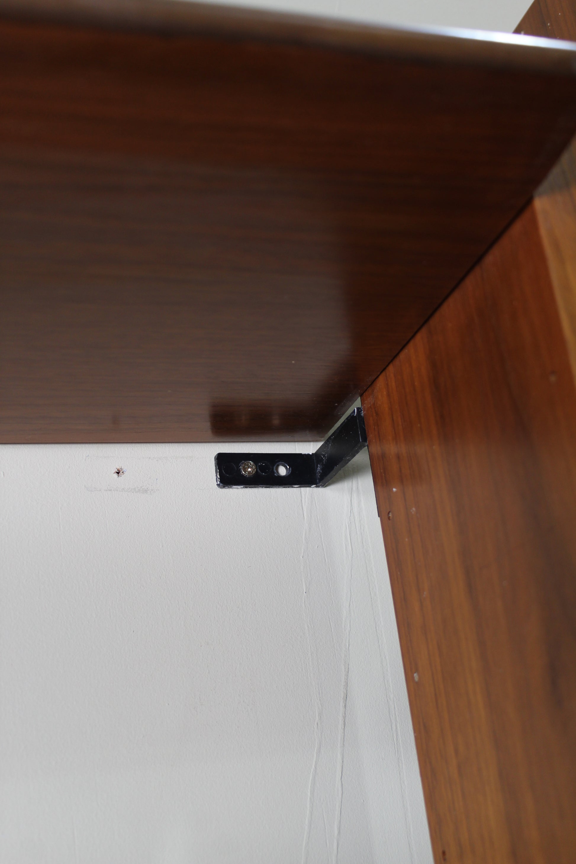 Deze wandkast is ontworpen door Peter Petrides in de jaren '60 voor Interna Möbel. Hij is dus van Duitse komaf. Dit is een modulair wandsysteem en daardoor kun de planken en kast van hoogte verwisselen. We hebben een zelfde kast, die je zou kunnen combineren om één groter wandsysteem te maken.